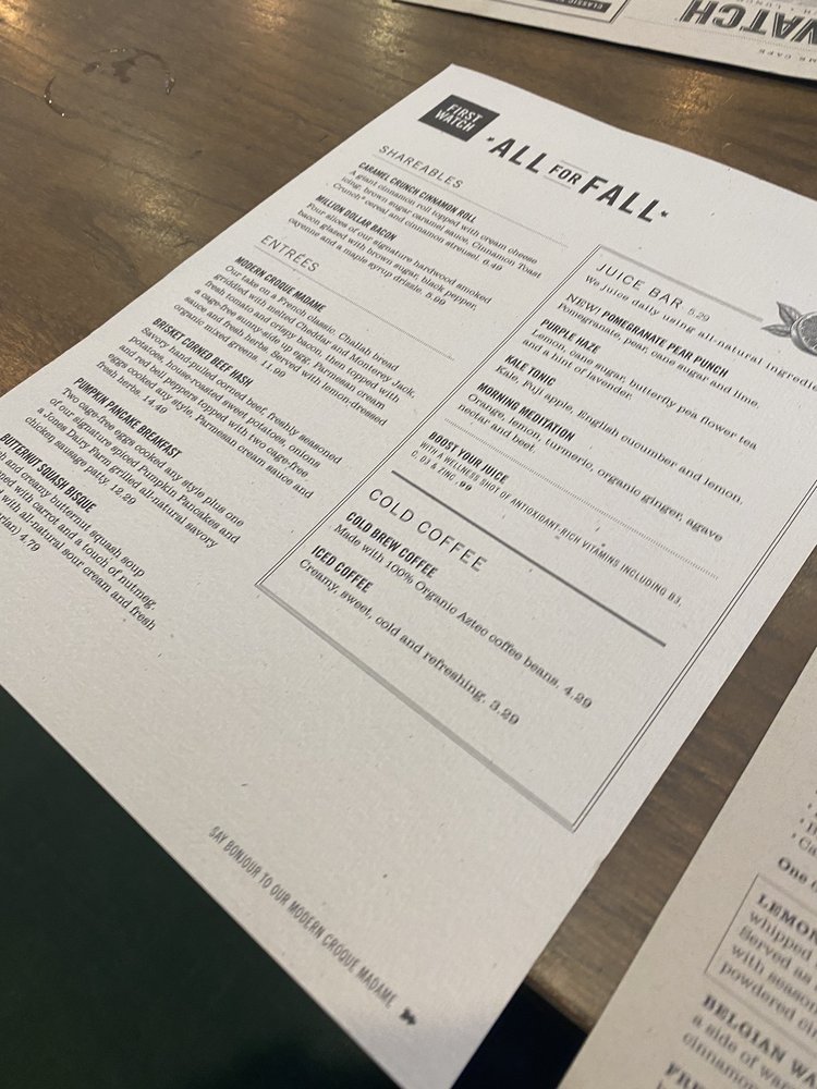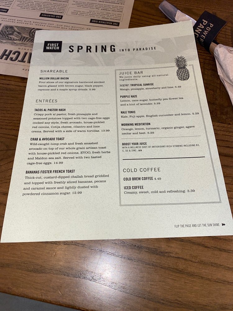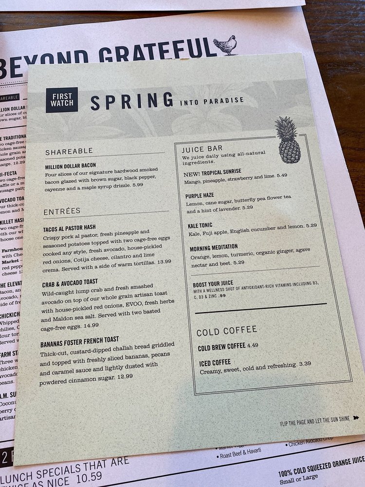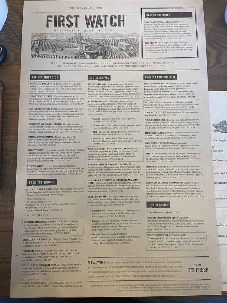 First Watch Pikesville's commitment to quality extends to their Healthier Side as well, featuring wholesome options like the Power Wrap and Avocado Toast. Each dish promises freshness and flavor, making it an ideal spot for a fulfilling breakfast or brunch.